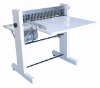 This Straight roll cutting machine is used for dividing adhesive papers.. TG600A Roll Cutting machine (adhesive paper) max.600mm min.10mm. TG600A Rolling cutter 1. Max.cutting size: 600 mm 2. Min.cutting size: 10 mm 3. Rolling speed: 280 rpm 4. Voltage: 220V 5. Dimension: 1050*700*790 6. Net Weight: 50kgs 7.Other function: all cutter could exchange into perforator cutter, to make broken line for paper.